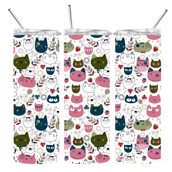 Cute Cats Tumbler 20 oz. INSTANT Digital Download PNG Sublimation Design