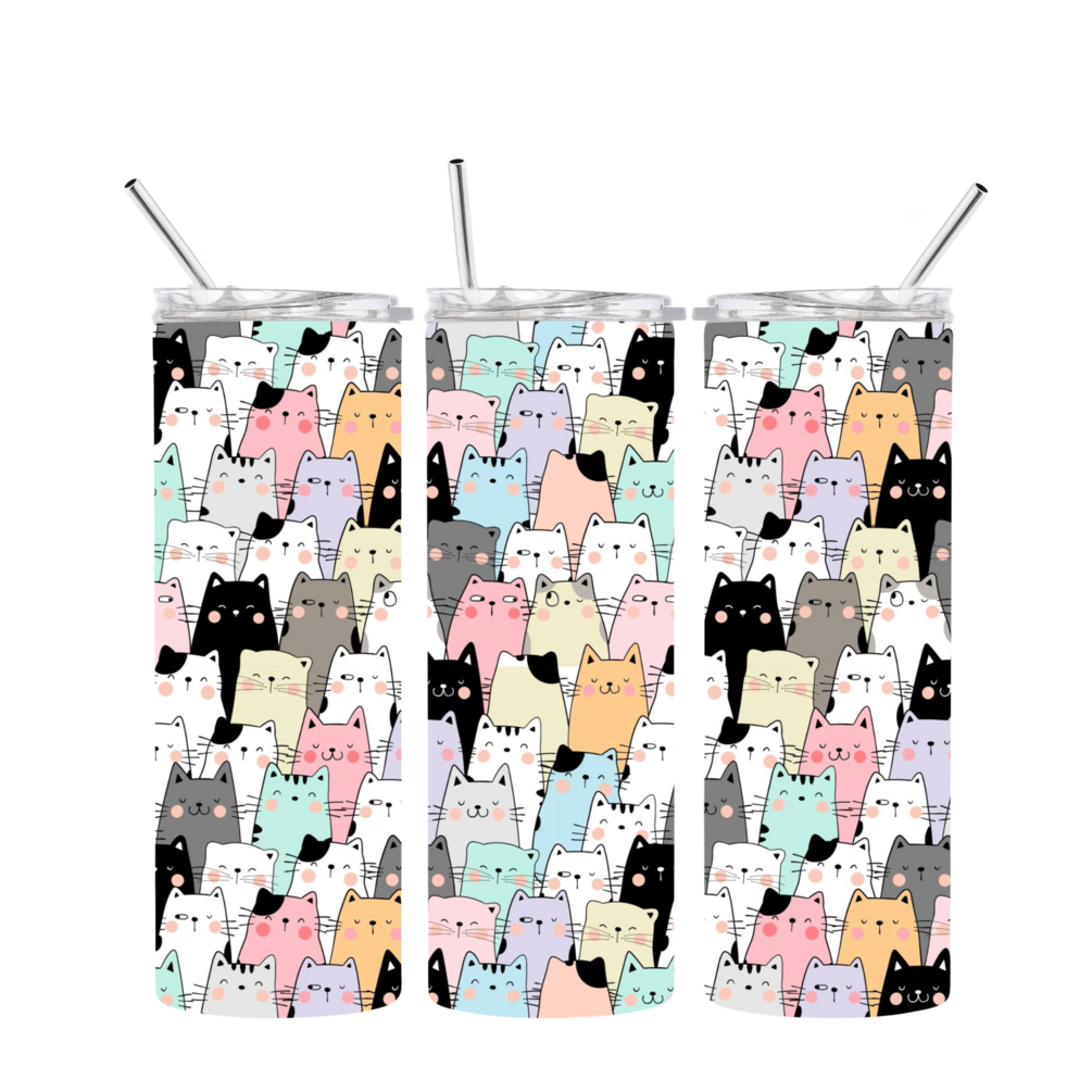 Cute Cats Tumbler 20 oz. INSTANT Digital Download PNG Sublimation Design